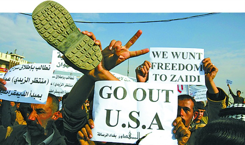 这人叫蒙塔扎尔·扎伊迪,后来在监狱里待了九个月。但在阿拉伯世界,他一夜之间成了英雄。他后来说,他想质问的是:“那些被毁掉的一切,你都看见了吗?”