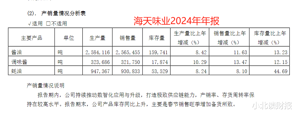 2024年海天味业各类产品的销量均保持了增长,其中酱油销量同比增长11.63%;量的增长非常关键,只有销量增长了,什么品牌优势、规模效应才能发挥作用,只有量增长了才能抢占市场。