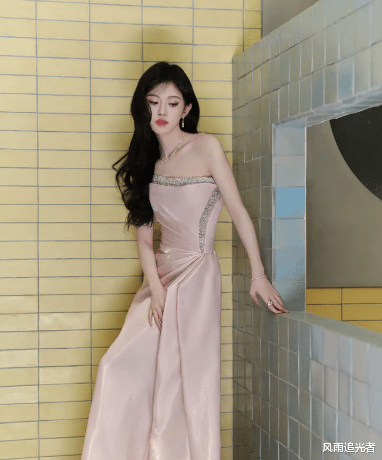 只见她身披一条粉色百褶长裙,那裙子层层叠叠,就像把一整片粉色云朵穿在了身上。走起路来,裙摆摇曳生姿,仿佛在跳一场浪漫的华尔兹,把人彻底迷住。再看这肩颈处,线条柔得能掐出水来,搭配上那精致的锁骨,愣是把简单的裙子穿出了高级感,仿佛是大自然的“鬼斧神工”。