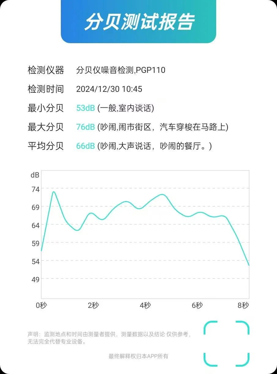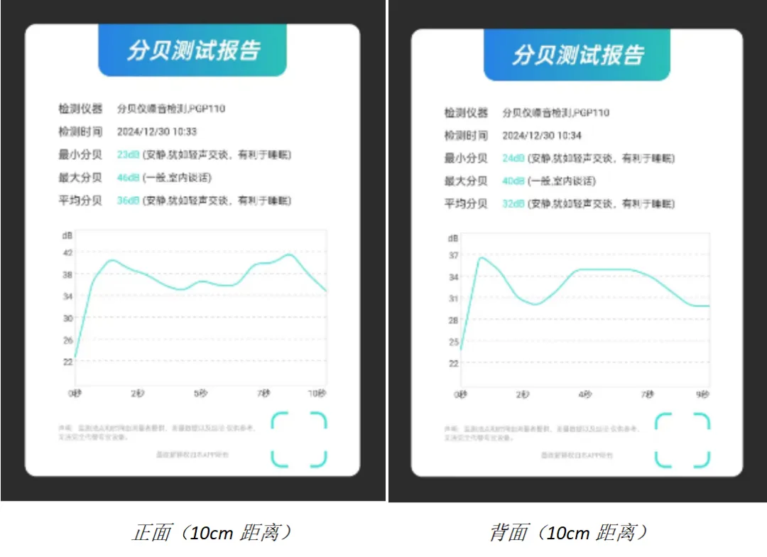 作为开放式耳机,避不开的两点便是漏音控制与嘈杂环境下的听声表现。前述试音环节,我们均在30dB的安静夜间来进行的,我们依旧在安静环境下测试其声压级与漏音情况。通过分贝测试仪,我们分别在10cm距离测试其耳机100%音量的正反面声压级。