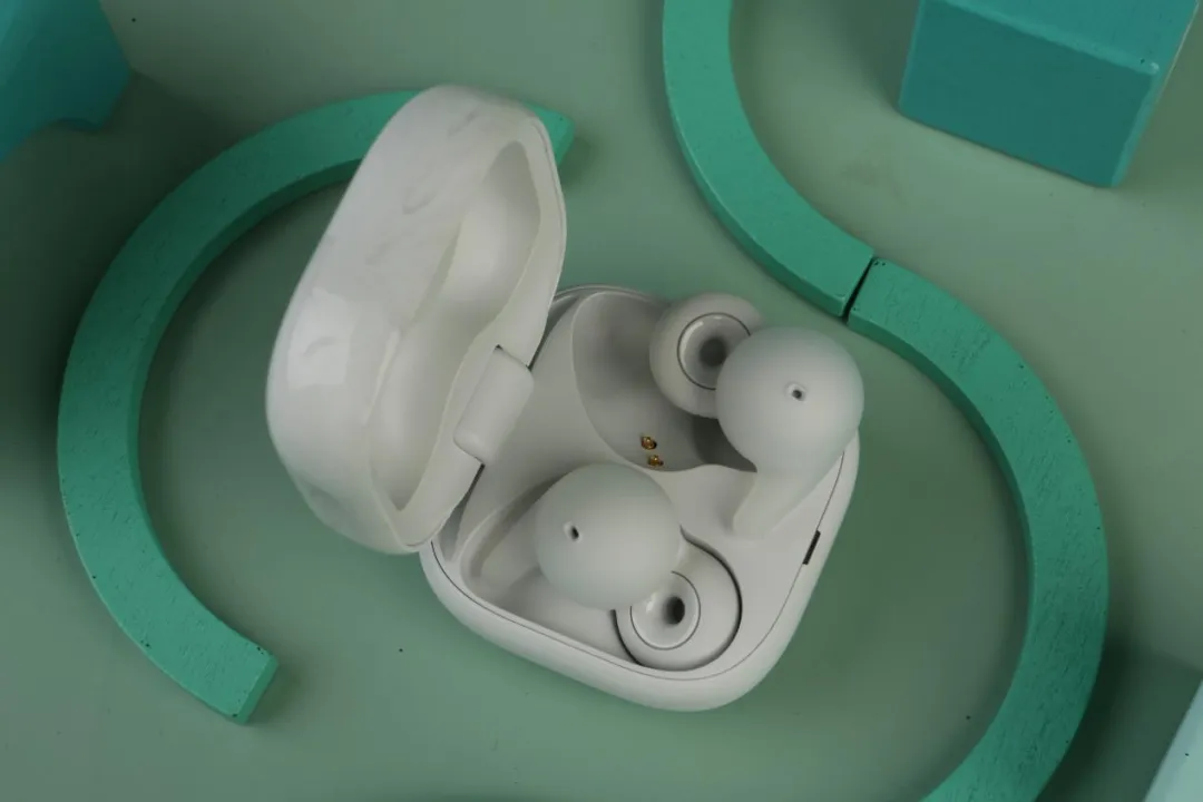 我们体验这款耳机时,对其入耳体感有褒有贬,总体评价是好评:比如体积小、重量轻、易便携、长续航;但由于要塞入耳甲腔内侧才能戴稳,LinkBuds上手佩戴需要适应,但佩戴好后的稳定性是不输入耳式耳塞的;另外,“圆饼”造型并不能与千人千耳的耳廓完全适配,外边缘的硬质材质或多或少会带来久戴“胀”感,触肤体验需要改进。从临近听音的贴合度来看,它的环形发声单元营造的声场是值得加分的,与单元分离的球形触控区也易于操控……