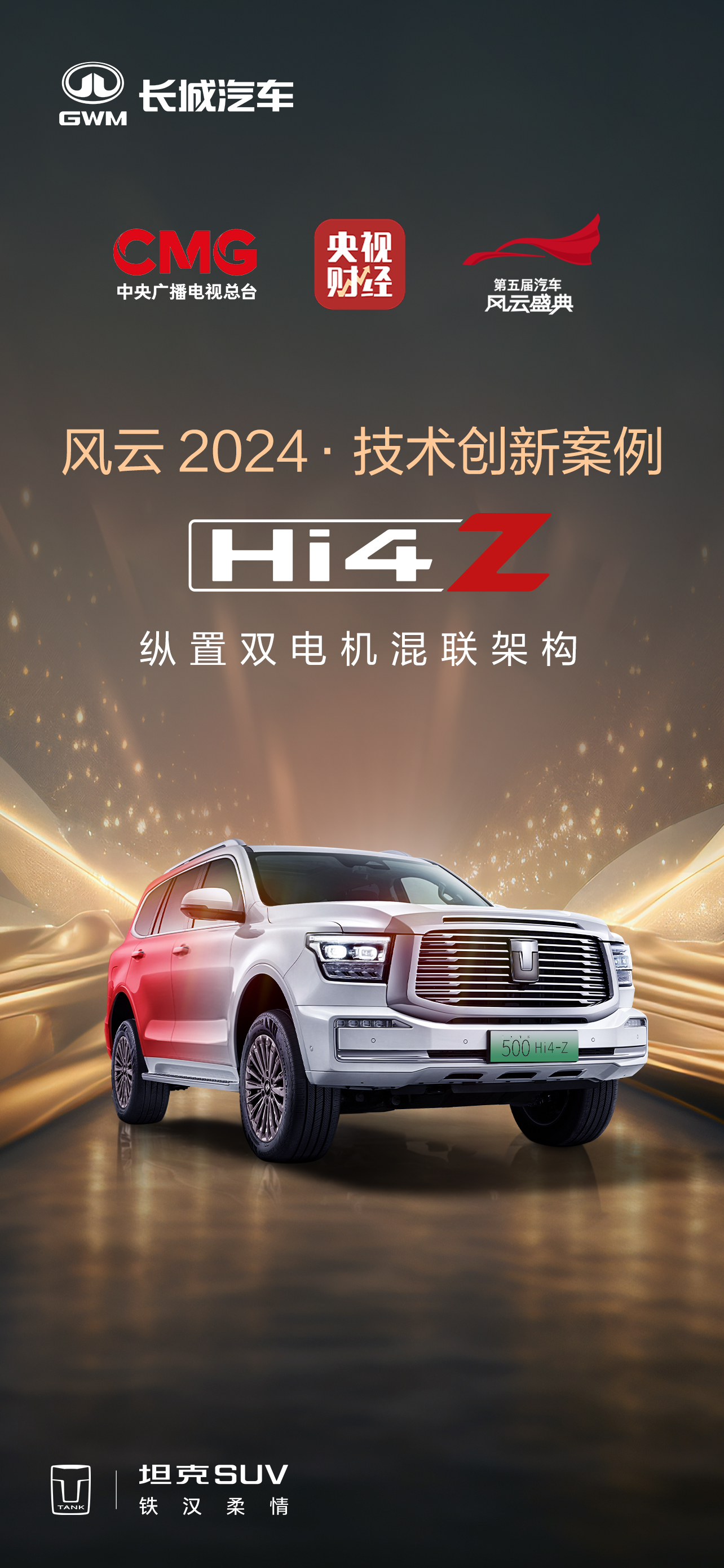 1月27日,长城汽车泛越野超级电混架构Hi4-Z在第五届《汽车风云盛典》中荣获“风云2024·技术创新案例”奖,有力展现出坦克品牌在新能源越野技术领域的创新成果。
