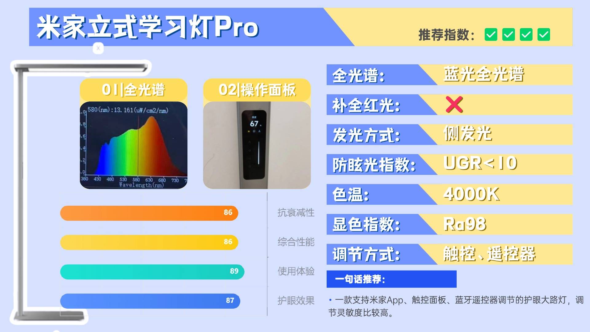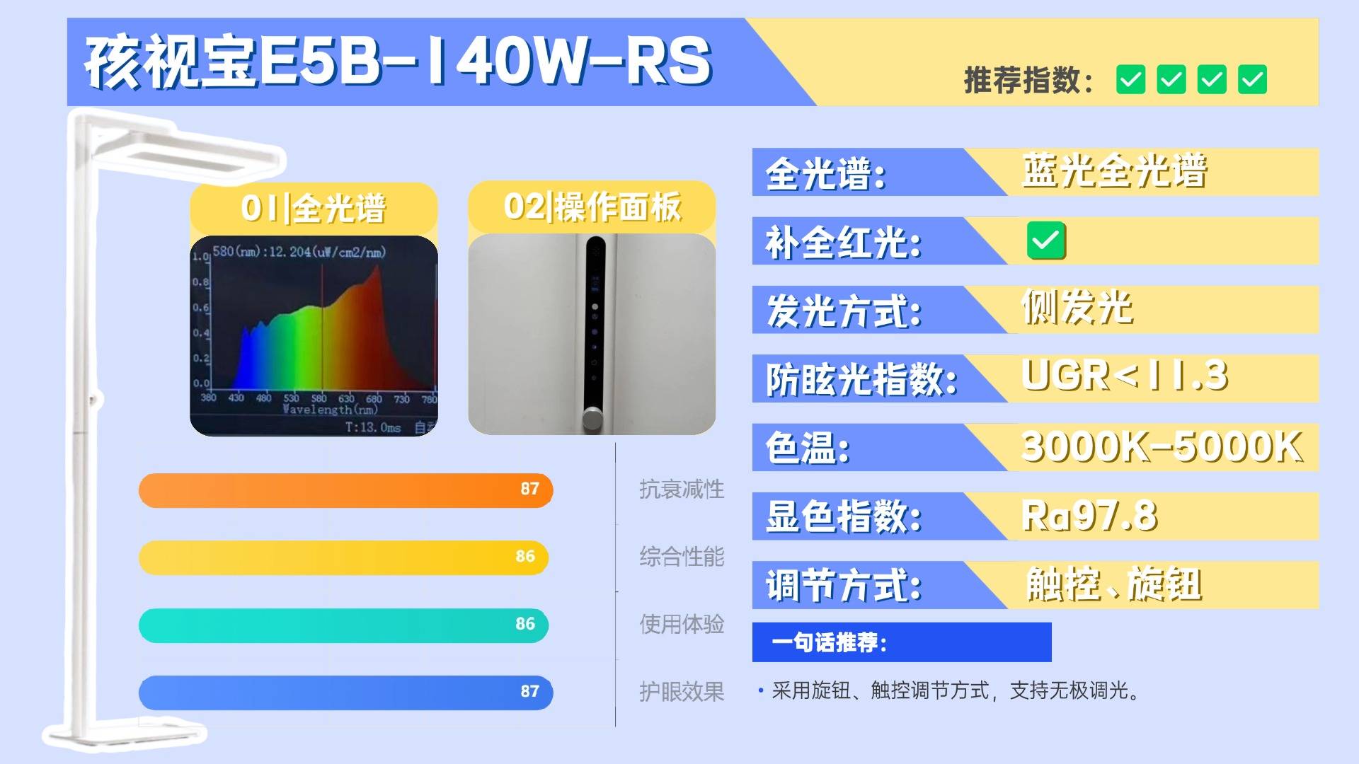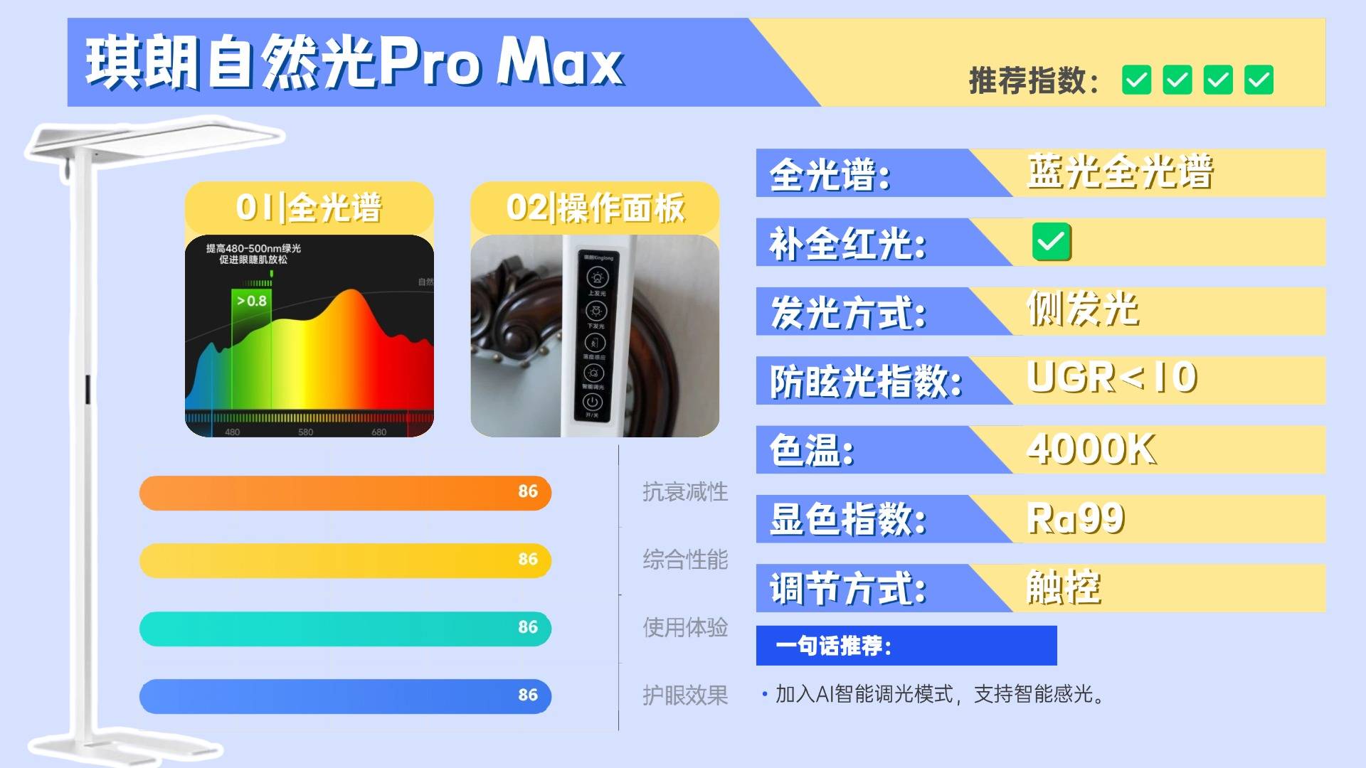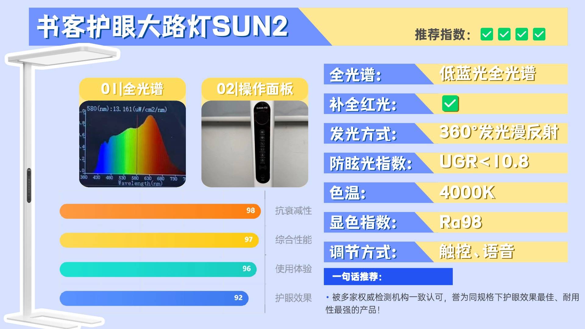 综合评价:独创18项护眼生物光学黑科技,护眼灯行业最强“养护”标杆!