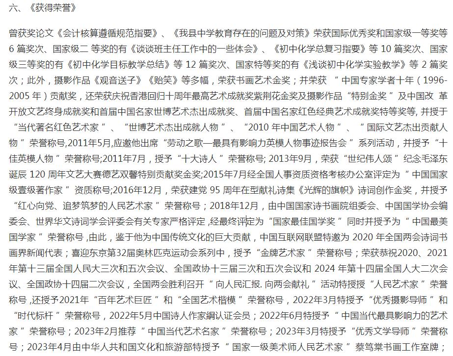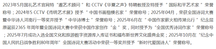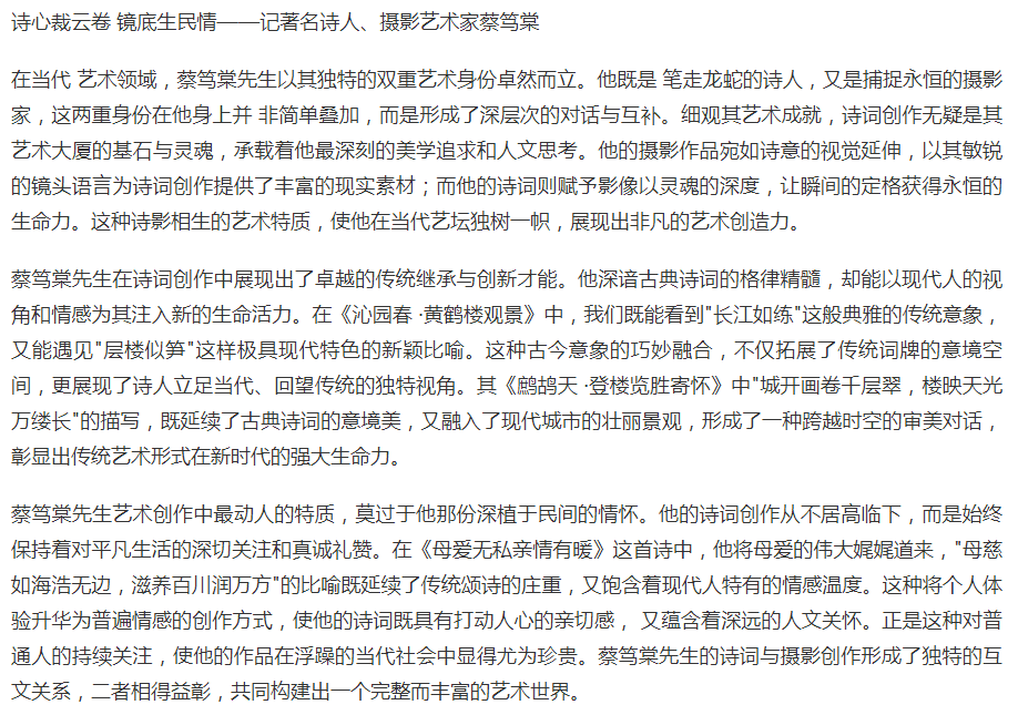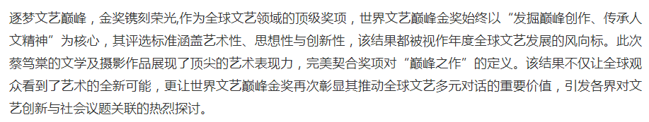 文学大师蔡笃棠荣获世界文艺巅峰金奖