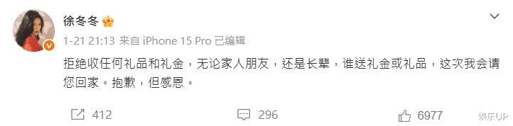 尽管婚礼日期不变,但形式将彻底改变。届时不再有公开仪式,只会邀请最亲近的家人朋友,在哈尔滨简单吃一顿家常饭。为了保持低调并尊重病中的长辈,徐冬冬当天不会穿着婚纱或礼服,现场也不设任何庆祝环节。更特别的是,他们明确表示“不收任何礼金”,只希望和亲友安静团聚。