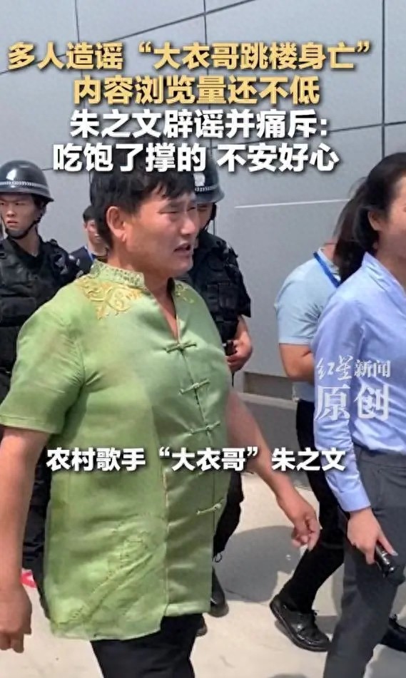 "大衣哥朱之文被造谣跳楼身亡"事件近日引发全网热议,其本人紧急辟谣并痛斥造谣者"吃饱了撑的、不安好心"。