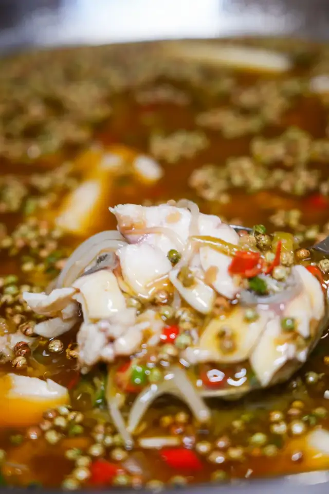 所以店里也一直出新品,这个青花椒鱼用的是四川金阳青花椒和鲜花椒,高汤做底,味道很干净,麻得很轻但很立体。