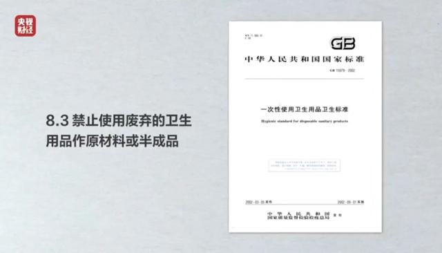 按照国标GB 15979-2002《一次性使用卫生用品卫生标准》的明文规定,禁止使用废弃的卫生用品作原材料或半成品。而且卫生巾、纸尿裤等产品在原材料卫生、生产环境与过程卫生、消毒过程、包装运输与贮存等方面,国家质量法规都有着严格的要求。 这些从正规企业淘汰的工业垃圾中挑拣出来的所谓二等品,在希希纸制品公司要经过哪些工序?
