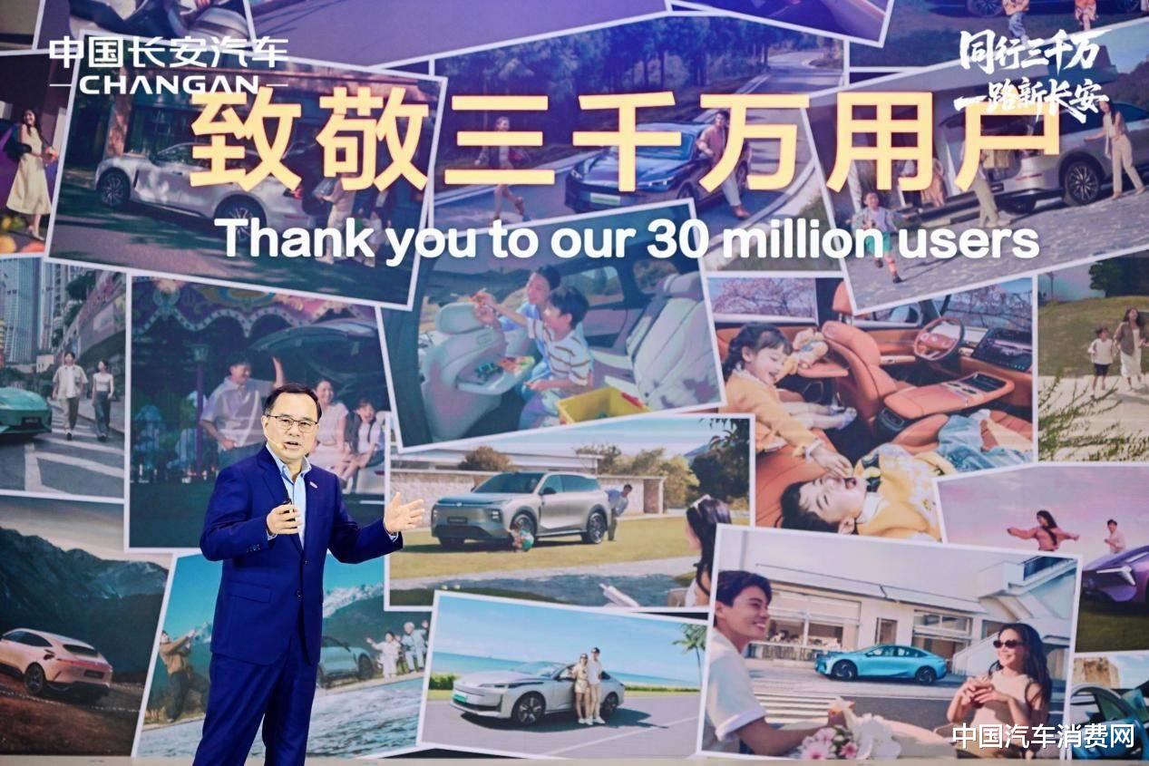 中国长安汽车党委书记、董事长朱华荣表示"今日之长安,是广大用户厚爱,合作伙伴、社会各界长期支持,以及一代代长安人无私奉献的结果。向全球所有长安的用户致敬,对所有关心、支持长安的每位朋友、社会各界表示衷心的感谢。"立足中国长安中国品牌汽车3000万新起点,到2030年,将力争实现产销500万辆,其中新能源占比超60%,海外占比超30%。为全球更多用户,创造高品质的出行生活。