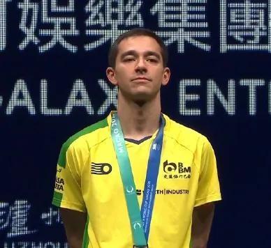 所以他最后夺冠了,高兴得连领奖服外套都忘记穿了,直接穿着赛服就上去了。