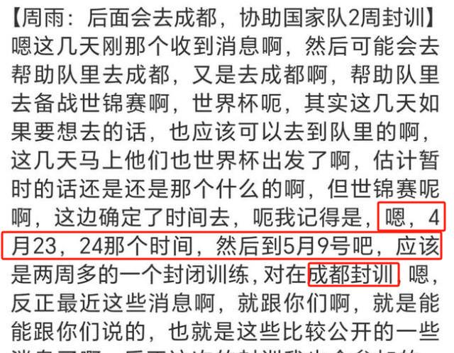 昨天比赛才结束,今天国乒队员们就要去成都参加为期两个星期的封训了。