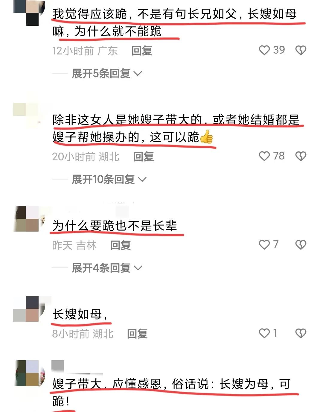 这么年轻的嫂子不应该跪,至少要大18岁才可以称嫂娘。