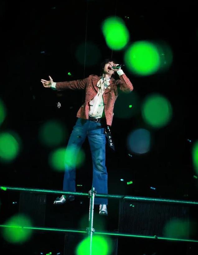 不仅如此,为了增加表演效果,王一博还选择了一首摇滚风格的新歌作为表演曲目,再加上他不断变换的肢体动作,让这个原本简单的吊威亚表演,也充满了无限可能性。
