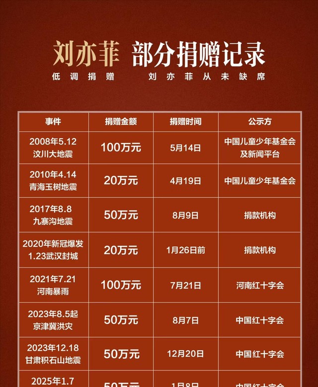 除了这两次,几乎每一次同胞有难刘亦菲都会献出自己的爱心。