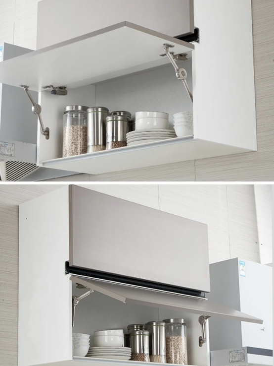 如果大家选择了上翻门的吊柜,那么在平时开门的时候就必须要踩着凳子,拿取物品的时候也很不容易,