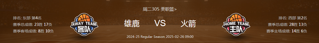 雄鹿进攻端外线优势明显,火箭防守端更强,篮板和抢断数据占优。