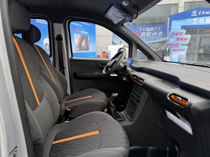 更舒适:宽体座舱,创业路上亦需呵护长时间的出摊、收摊与奔波,需要一个舒适的移动空间。途逸T7采用行业宽体系的1730mm驾驶室,内部空间宽敞,乘坐毫无压抑感。全包式设计带来了卓越的密封性与隔音效果,车内噪音显著低于竞品。其配备的包裹式航空座椅,符合人体工程学,靠背最大可调至135°,能让您在忙碌间隙得到充分放松。标配的电动车窗、遥控中控锁、丰富储物空间及可选装的10寸智能大屏,带来了轿车级的驾乘体验,让辛苦的创业路途变得轻松惬意。