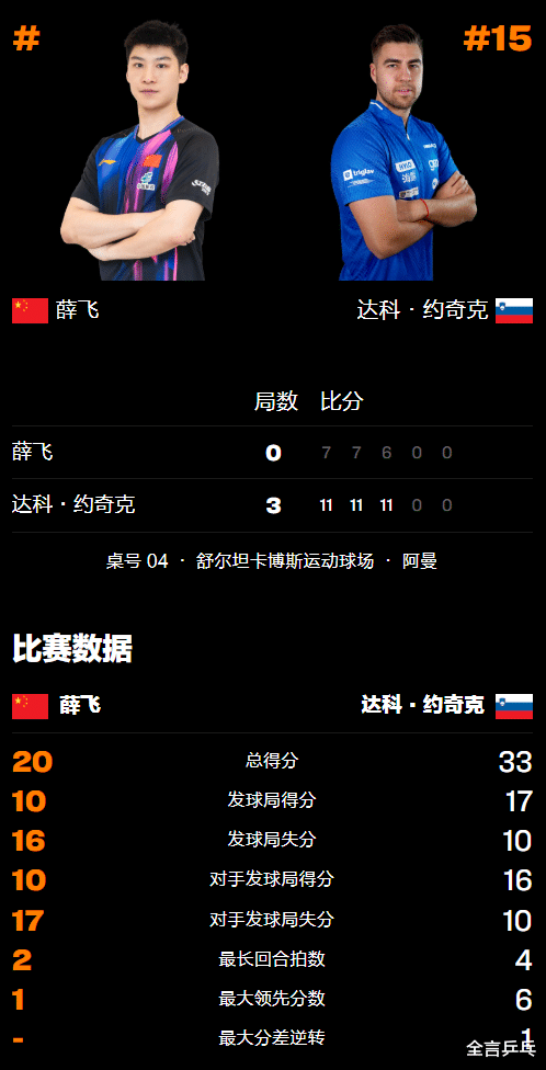 2026年1月21日晚,乒乓球WTT马斯喀特常规赛继续进行,国乒直拍名将、有“张本智和克星”美名的薛飞遭遇惨败,在男单正赛首轮0-3不敌斯洛文尼亚选手达科,由此而止步32强被淘汰,这也是他近一年来的第13次单打输外协会运动员,详细战况请看下文。