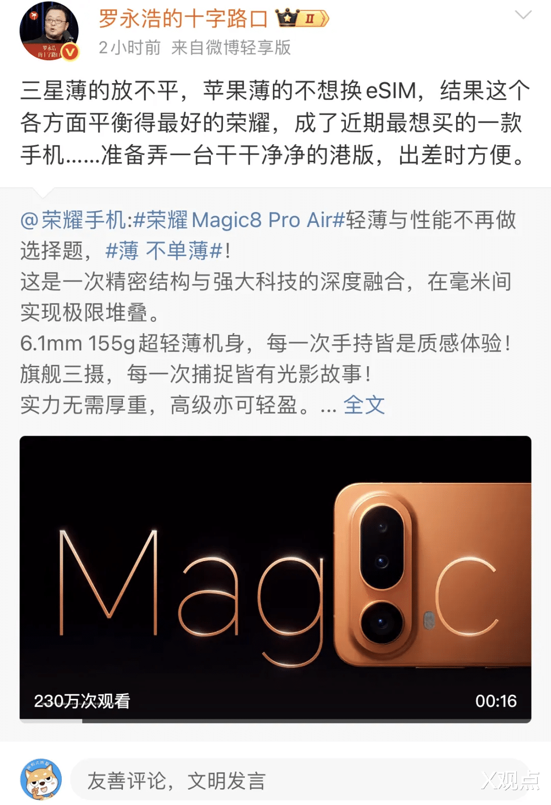 看着Magic V6发布会上那个用手机做引体向上的年轻产品经理,我突然明白了一件事:一个企业的气质,真的会随着掌舵人改变。