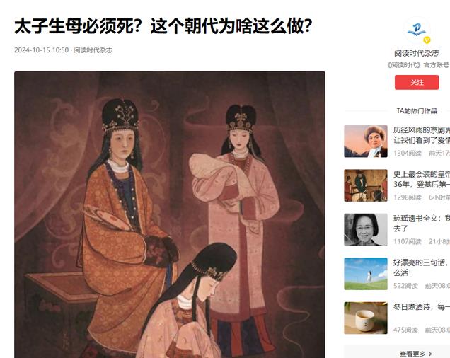 信源:太子生母必须死?这个朝代为啥这么做?——2024-10-15 ·阅读时代杂志