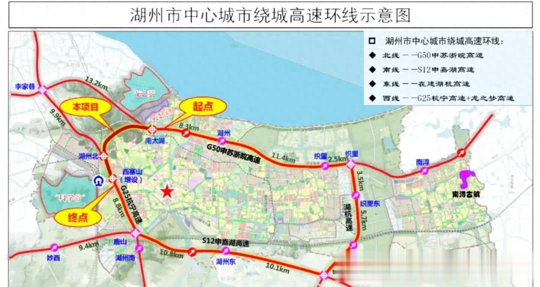 目前湖州市区已经形成了以G50沪渝高速(申苏浙皖)、G25长深高速(杭宁)、S12申嘉湖高速、S47湖杭高速合围起来的绕城高速。不过美中不足的是这个由四条线路形成的这个环西北角却到了长兴城南的李家巷。