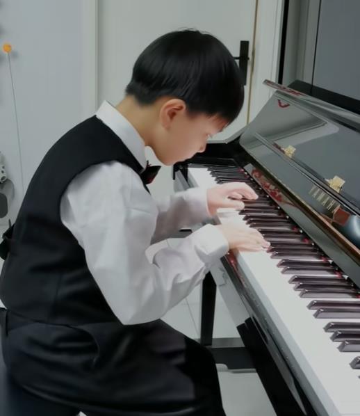 除此之外他还会练习弹钢琴,小小的身体坐在钢琴前,两只手在琴键上来回弹奏,满脸的认真和“我可以”。
