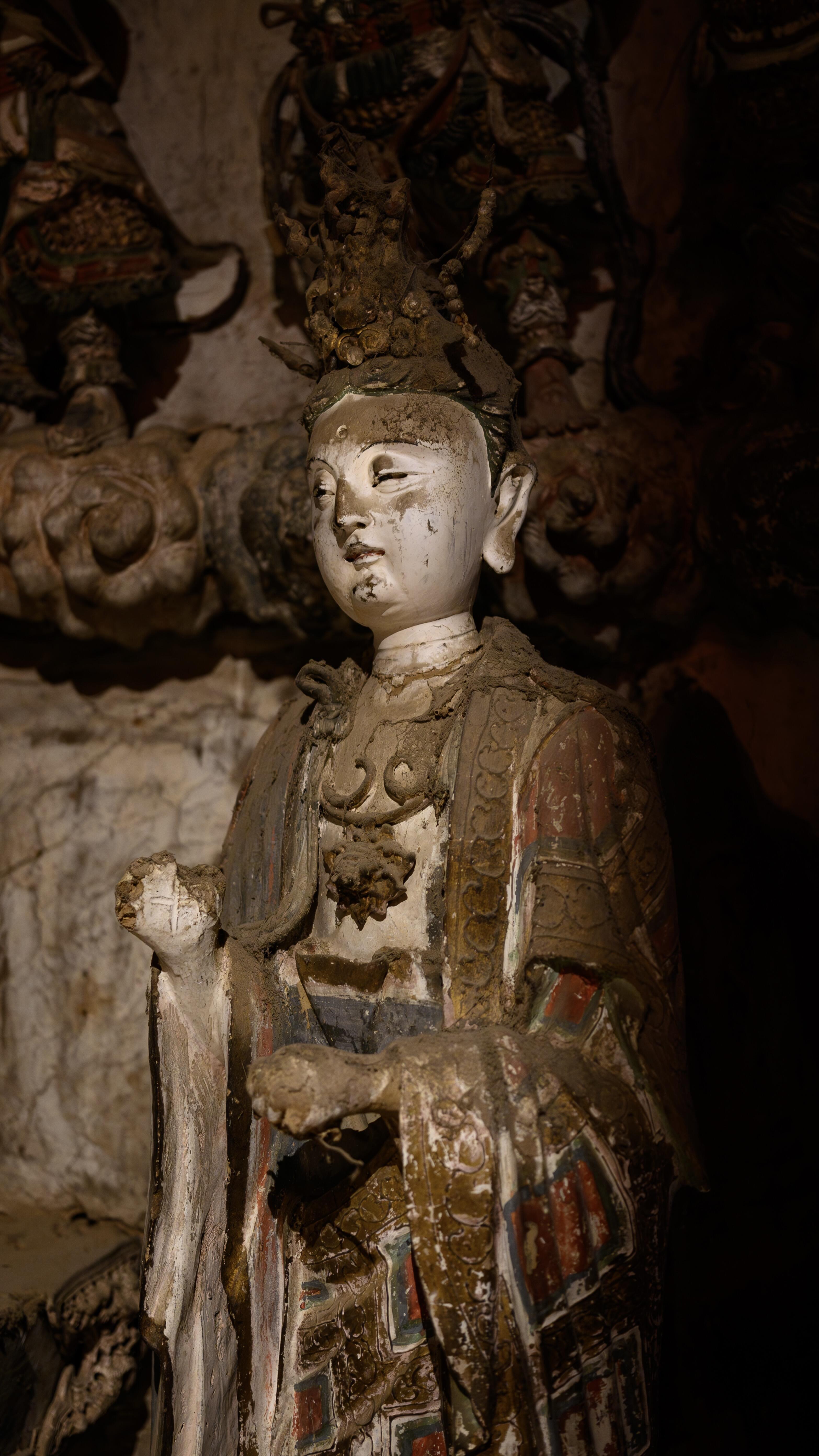殿外的雪又开始下了,纷纷扬扬的雪花落在屋檐上,给这座古庵添了几分禅意。游人渐渐多了起来,有人举着相机不停拍摄,有人对着塑像低声赞叹,也有人像我一样,静静伫立,试图与那些古老的塑像对话。我想起那些模糊高噪的照片,或许它们不够完美,却真实记录了我与水陆庵的相遇,记录了那些在时光中沉淀下来的美。早年无人看护的岁月里,这些塑像曾经历过怎样的风雨?那些细微的破损处,是否藏着不为人知的故事?如今它们被好好保护起来,成为全国重点文物保护单位,让更多人得以见证这份珍贵的文化遗产。