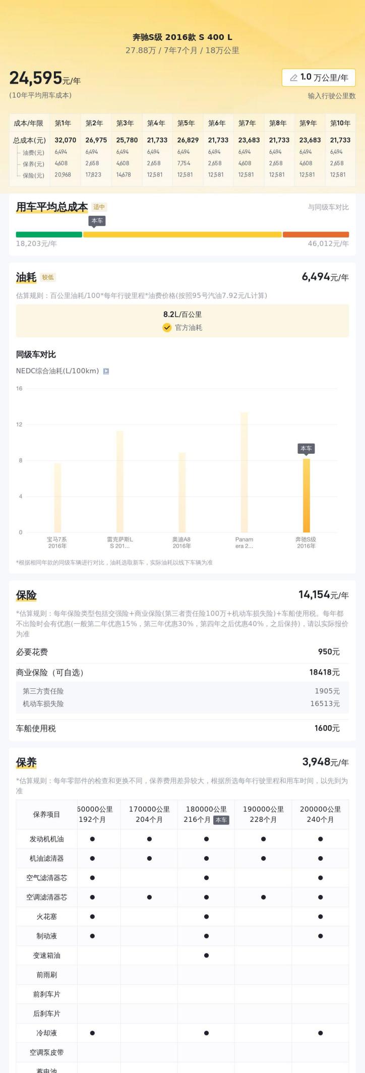 最后,我们再来谈谈用车成本。根据一些车主的反馈,S400L的百公里油耗在10-12L左右。按照目前的油价计算,每年的油费大约在1.5-2万元之间。