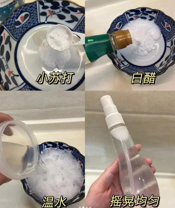 方法也很简单:小苏打、倒入白醋加入温水,摇晃均匀。
