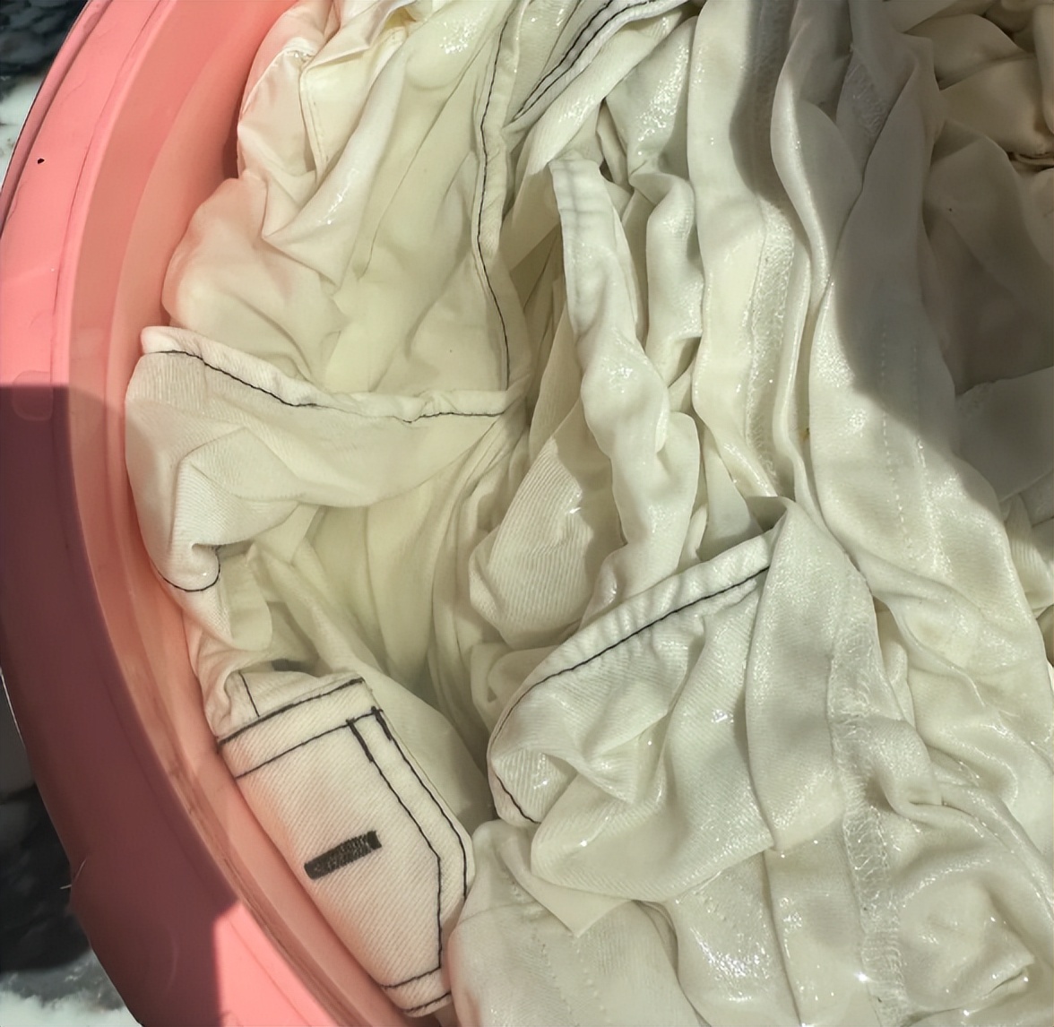 泡了30分钟之后,可以直接扔进洗衣机里面清洗了,洗完之后,衣服跟新买的一样,发黄的问题也解决了。