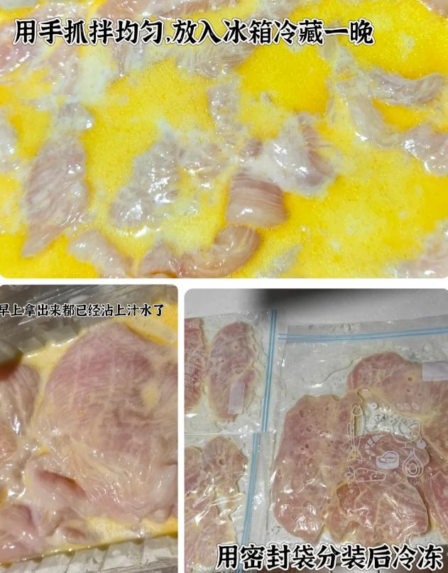 在准备腌料,把鸡胸肉腌制一下,密封好。