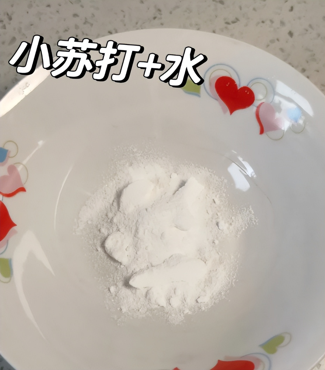 小苏打加水,放进碗里,再放入微波炉里面,高火叮5分钟。