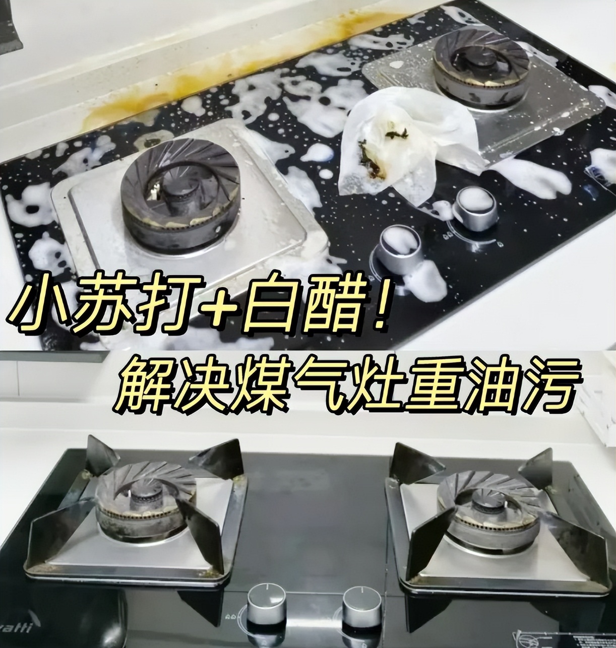 除了洗洁精之外,小苏打还可以搭配着白醋一起用,什么重油污全都能解决。