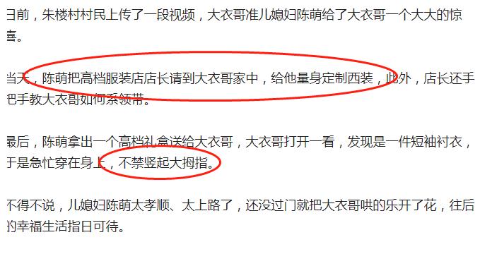 从晒出来的图片中能看到,大衣哥穿上儿媳妇送的这件黑白条纹的衬衣后,笑得合不拢嘴,并且还竖起了标志性的大拇指,给儿媳妇点赞。最让人觉得搞笑的,就是大衣哥逢人就说“这是我千挑万选的好儿媳妇”,生怕别人不知道儿媳妇给他买了什么好东西。