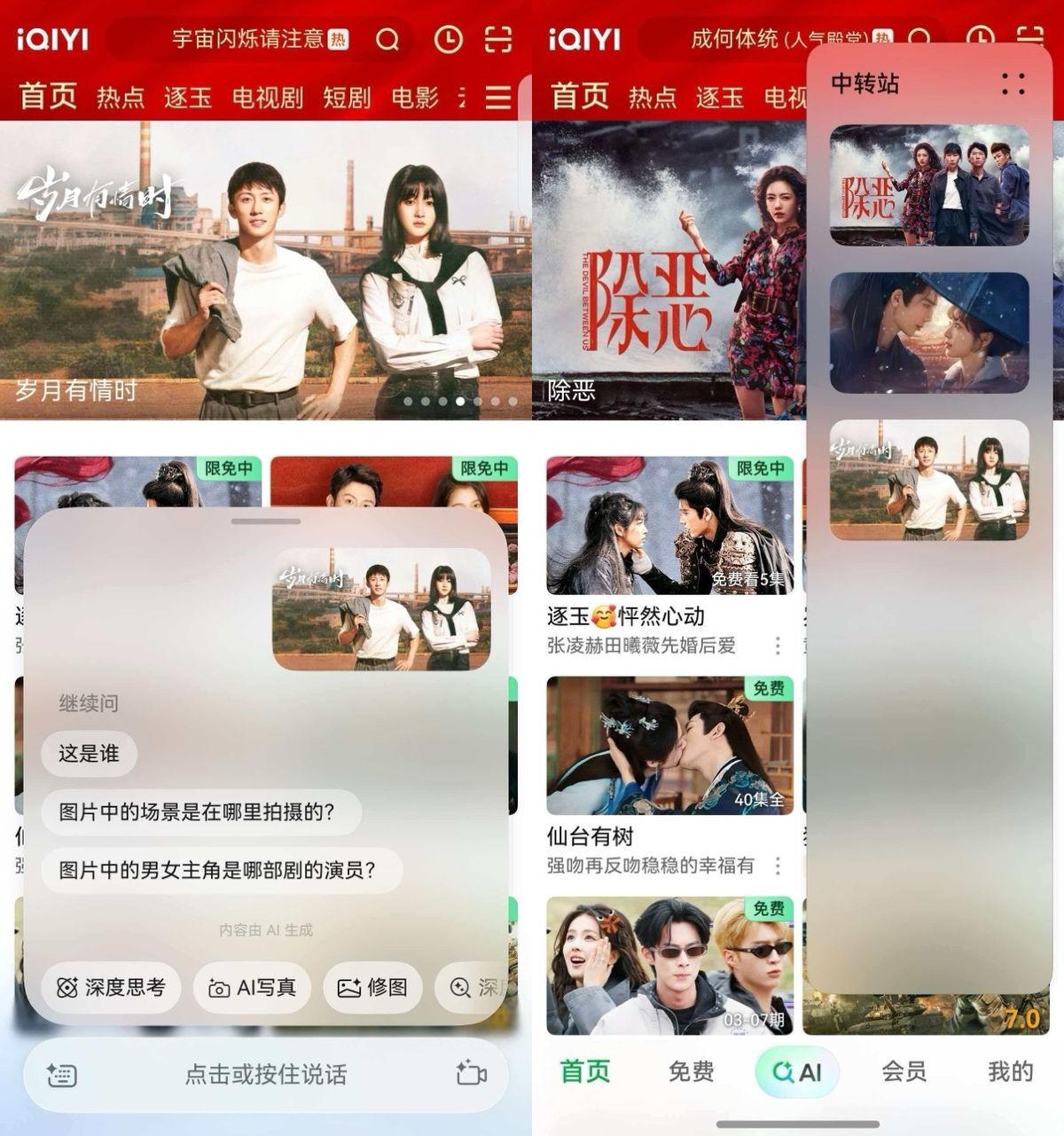 还有追剧的时候,在鸿蒙版爱奇艺看到感兴趣的新剧,把剧集海报拖给小艺,剧集简介、演员阵容、同系列推荐立马就出来了,比自己手动搜快多了!要是拿不定主意先看哪一部,还能把备选内容先拖到中转站暂存,之后统一拖给小艺帮忙对比分析,直接治好我的选择困难症!