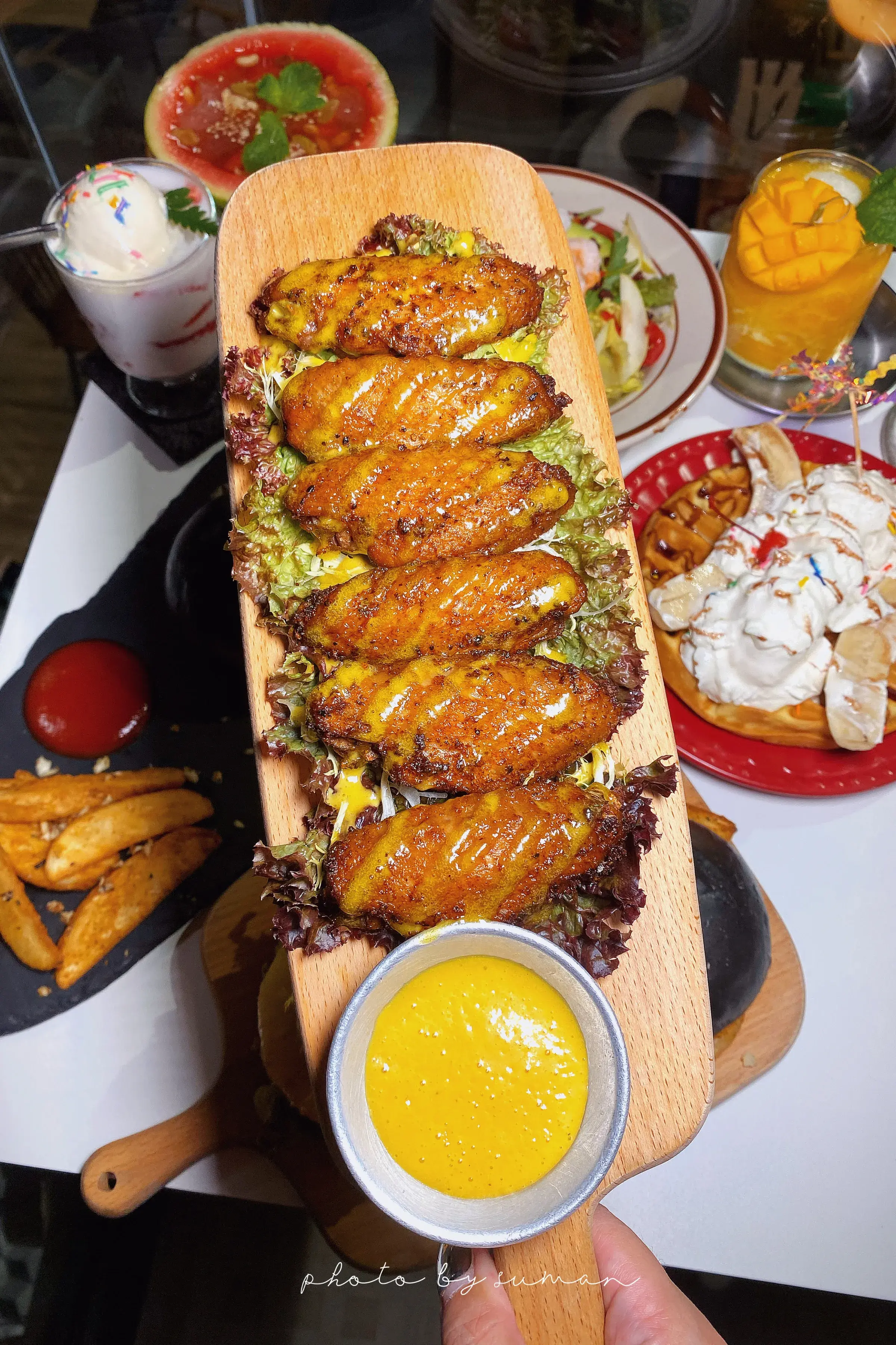 柠檬蜜汁烤翅、香蕉船松饼、草莓华夫饼松饼、芭乐椰椰茶,香橙冰茶,夏果冰冰,也是姐妹们下午茶好去处!逛街热了累了,直接来这喝杯颜值高又好喝的冰饮,吹着空调吃着高颜值下午茶,尊嘟好chill啊~