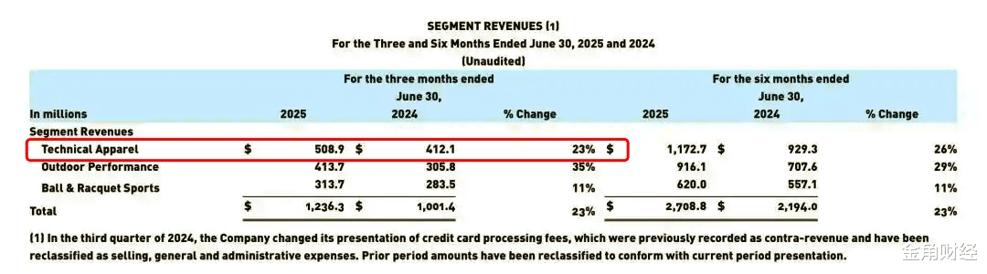 2025年二季度,始祖鸟所在的亚玛芬技术服装部门,营收增幅为23%,相较2024年同期下滑了11个百分点;同店收入增速为15%,相较2023年同期的80%增速峰值,更是下滑了65个百分点。另据亚玛芬集团财报,技术服装部门收入同比增速已连续三年下滑。