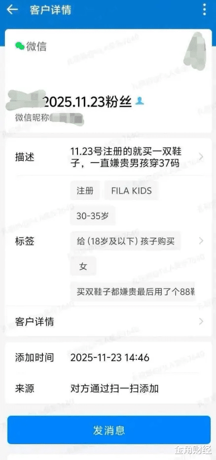 这次“惹事孩子”是FILA。有顾客发帖控诉,自己在FILA线下门店消费后,店员竟将自己的会员信息备注为“买双鞋子都嫌贵”,并将截图误发至会员群。