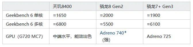 表现接近部分骁龙8+ Gen1机型,显著优于天玑8300/骁龙7+ Gen2。