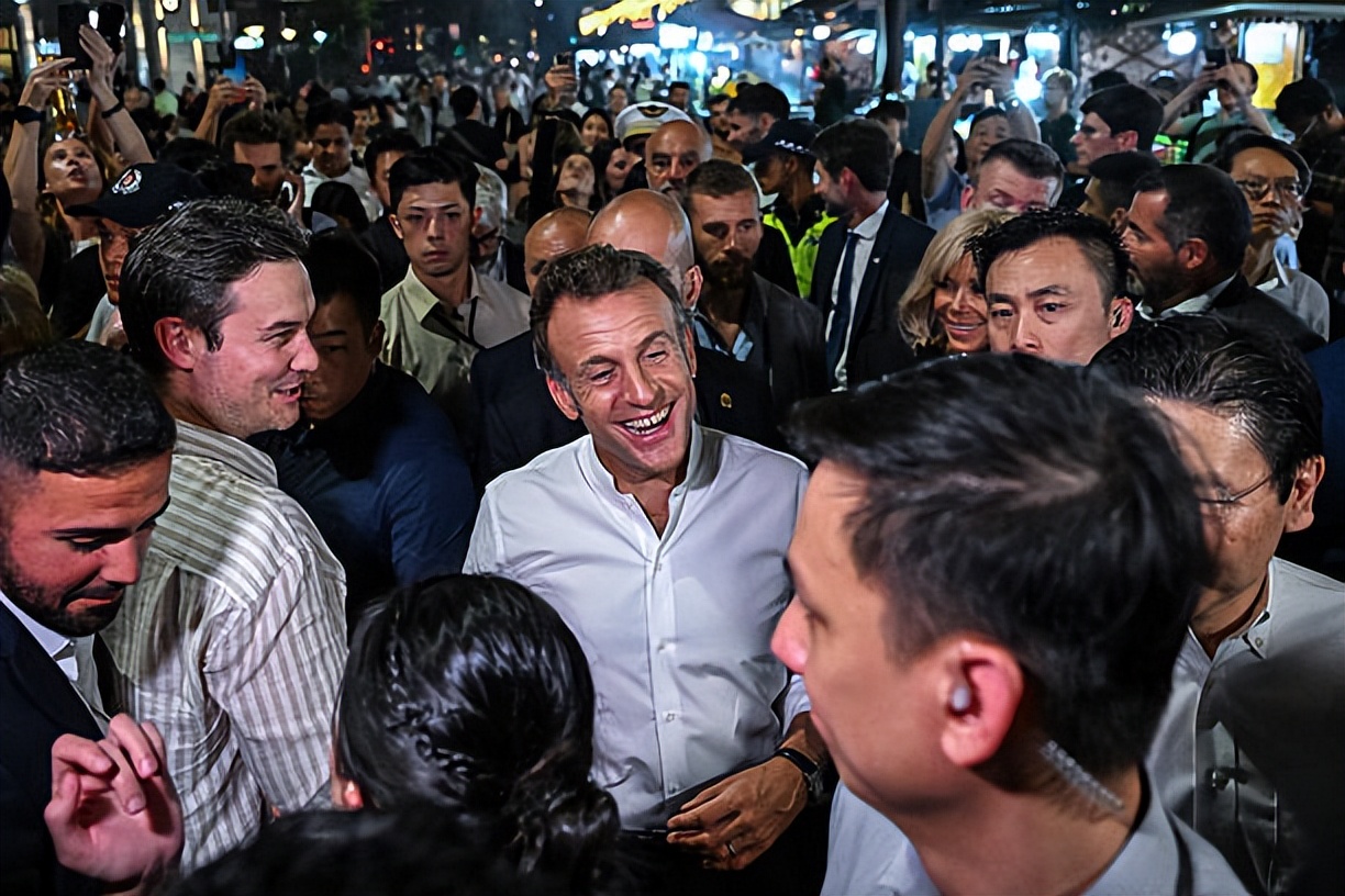马克龙在新加坡和美女们自拍好嗨!布里吉特不吃醋?这次恩爱了