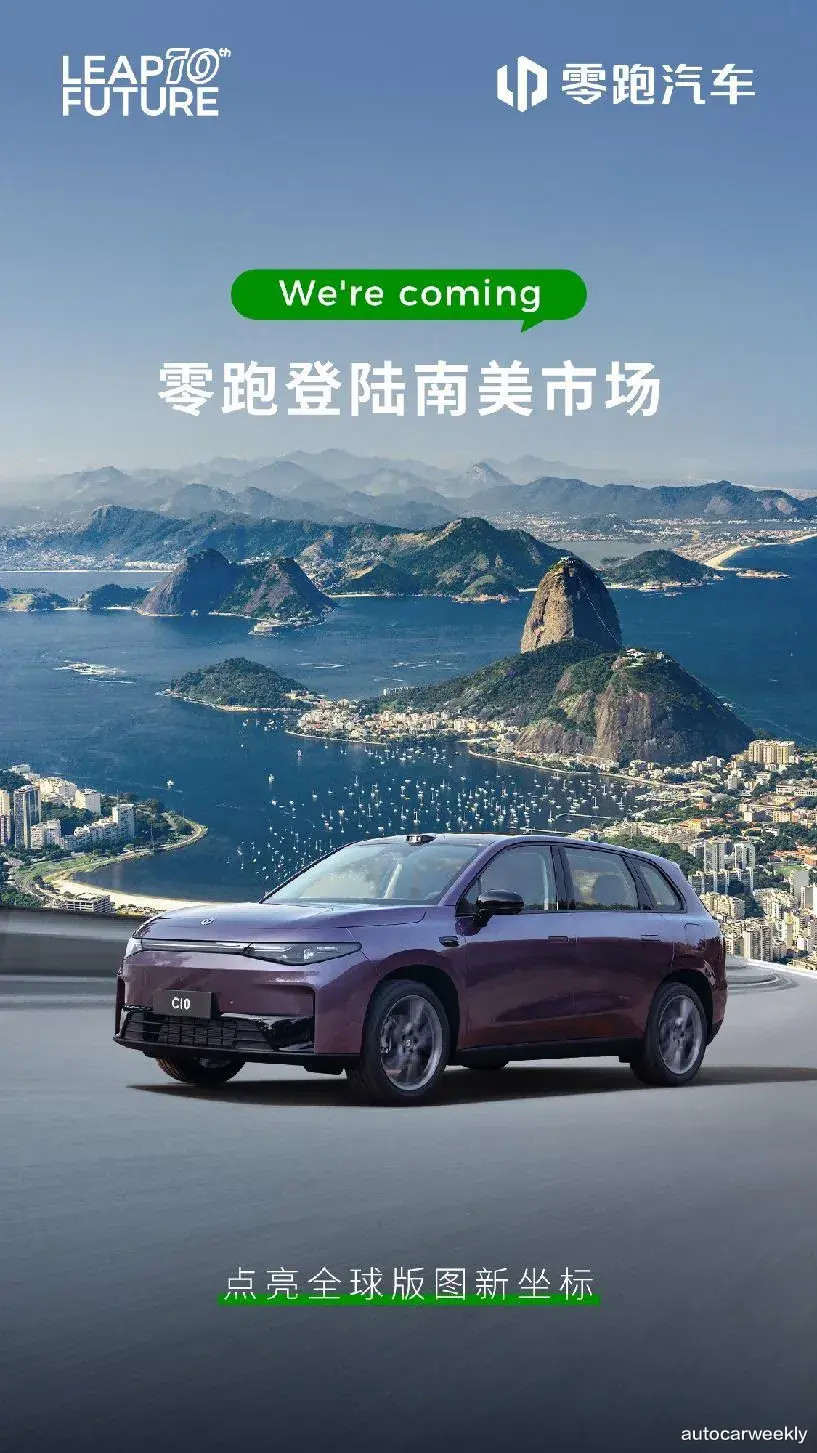 在今年11月,零跑汽车正式亮相巴西圣保罗车展。以此为标志,零跑宣告正式进军南美市场。截至目前,零跑已在巴西和智利推出C10的纯电版与增程版,以及中型纯电SUV B10,并在圣保罗车展上展示了C16。在2025年内,零跑将在巴西27个城市布局36家网点,在智利布局5家网点。
