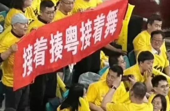 原来在昨天广东队和山西队比赛中,有山西队的球迷带着一条横幅来到了球馆在比赛过程中展示了出来,上面写着的是接着揍粤接着舞,随后这个图片被球迷发到了网上。
