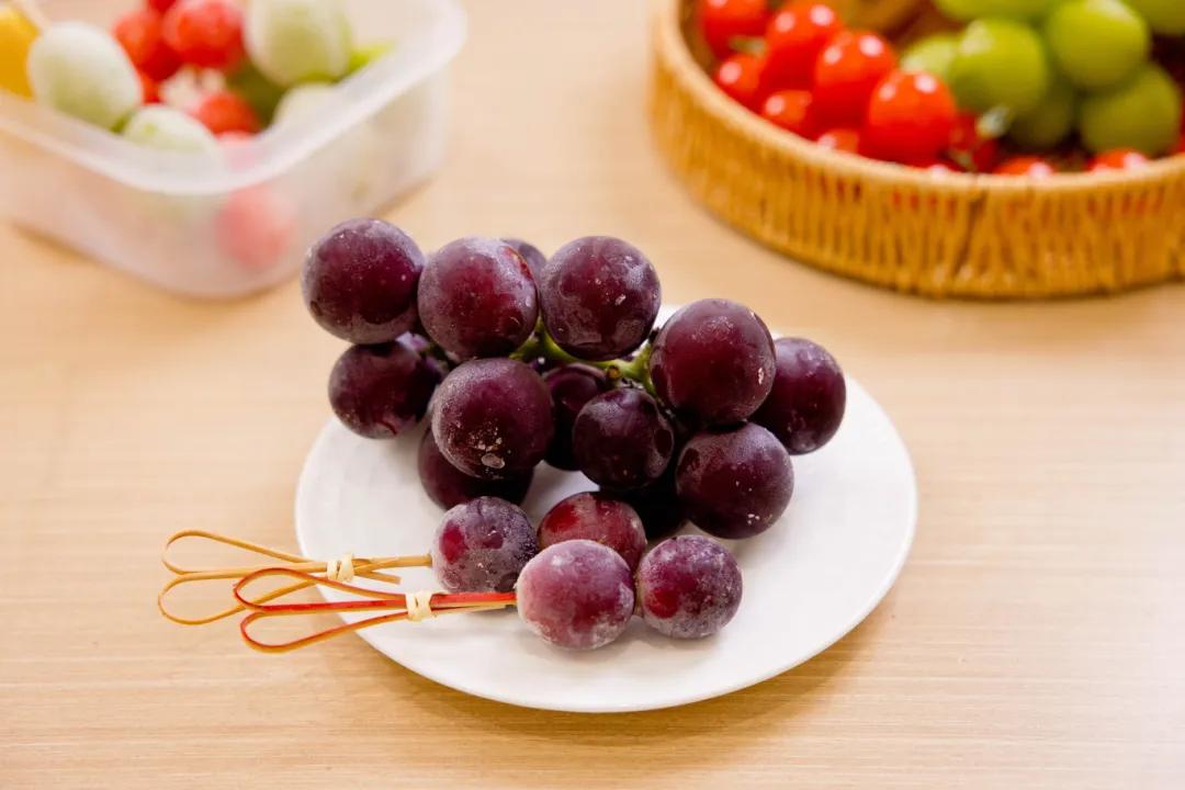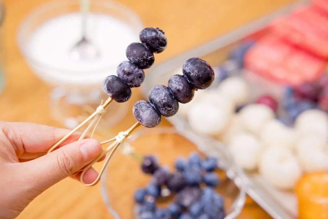 冻蓝莓和葡萄的口感差不多,像这样串成串瞬间变成夏日版“冰糖葫芦”,好看又好吃。