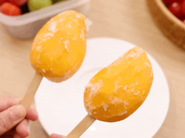 新鲜水果冷冻成雪糕的样子,看着还蛮诱人的。