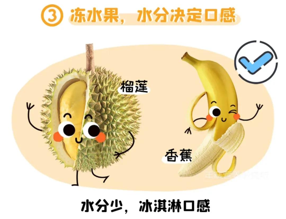 因为温度越低,水果中的果糖甜度反而会升高。尤其是果糖含量高的水果,比如香蕉、芒果,冻完甜度蹭蹭涨,口感绵密脆爽。
