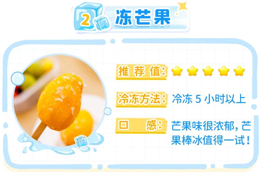 像芒果、荔枝这种汁水丰富的,容易吃得到处都是,但冻一冻会变得脆脆的,吃起来干净又卫生。