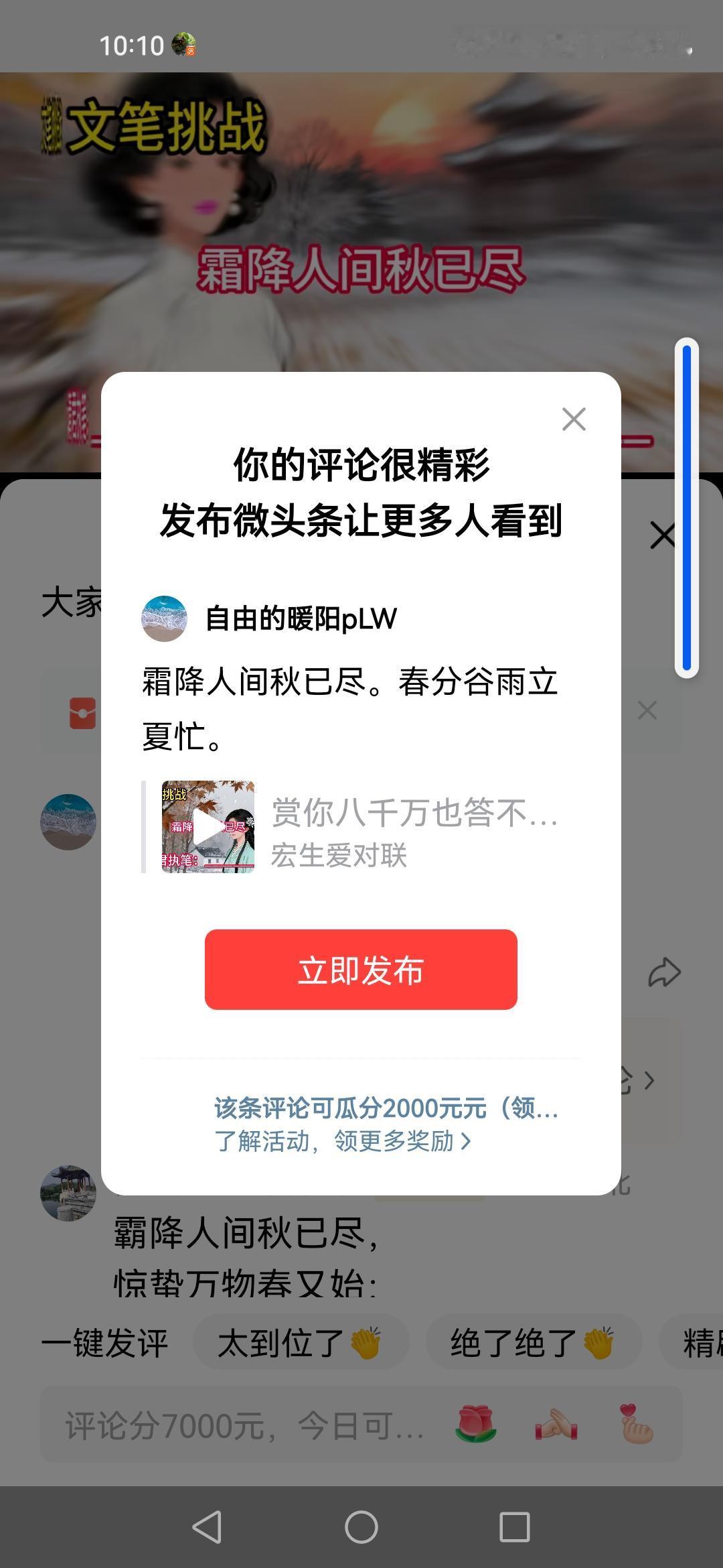 看到“秋霜催黄叶”这个上联,一下就感受到了秋天那种肃杀又唯美的氛围。秋霜降临,黄