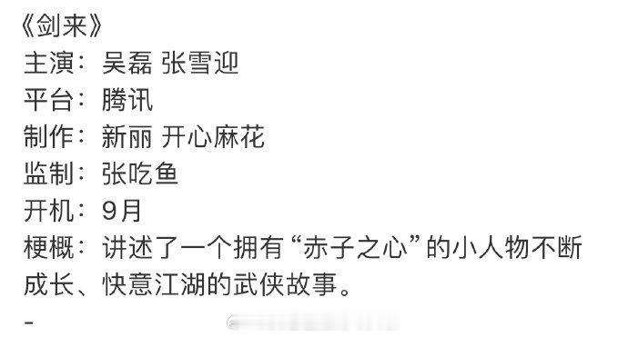 辛芷蕾的新饼《墨桑》,导演路阳,编剧代表作《漫长的季节》《扫黑风暴》。原著是女频