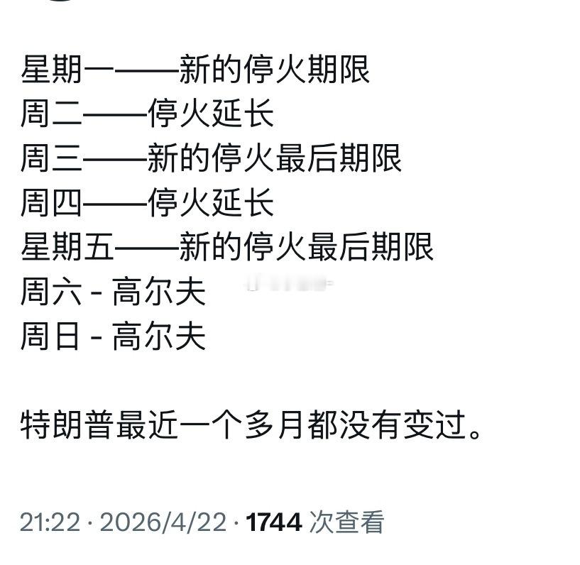 周五收盘前:召回万斯,明天我就要夷平伊朗。周一开盘前:已经派万斯去和谈了,小哈和